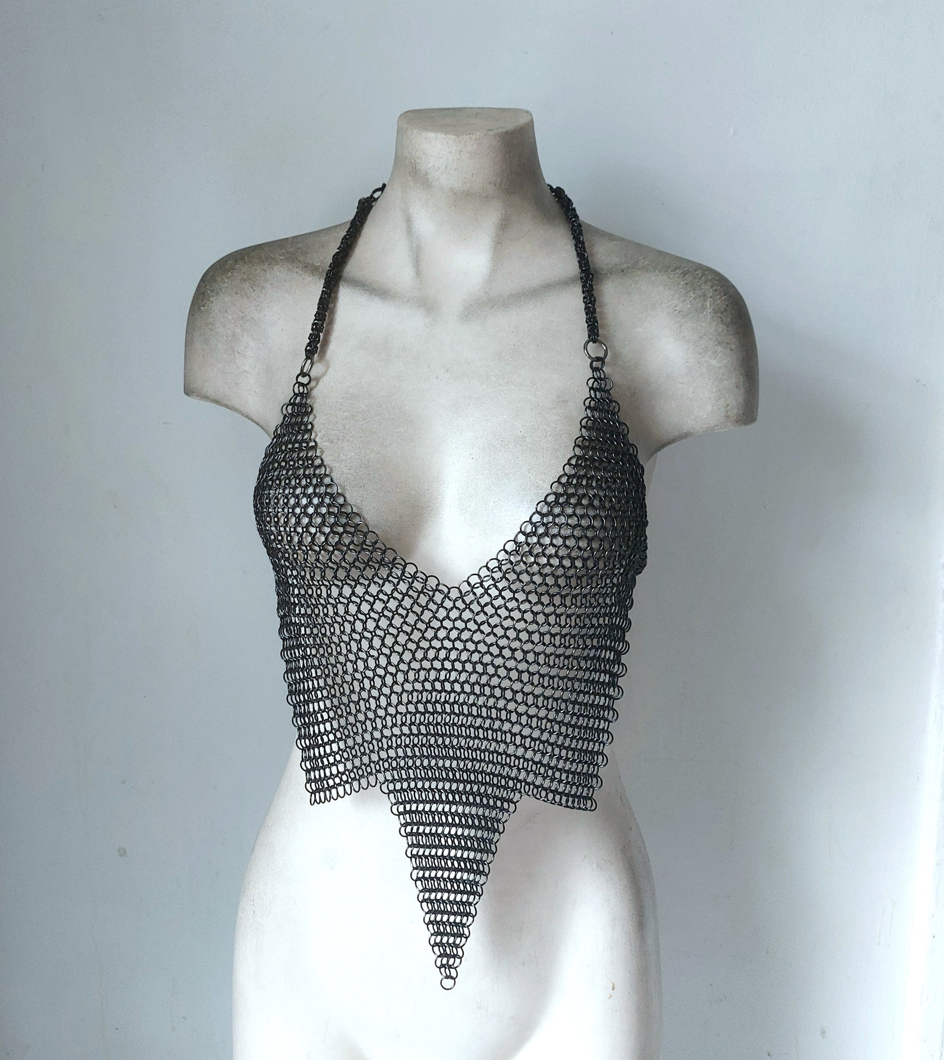 Our Zenobia pointed #chainmail top. Constructed out of a combination of gunmetal chainmail, with 1cm gunmetal o-rings & matching chains.